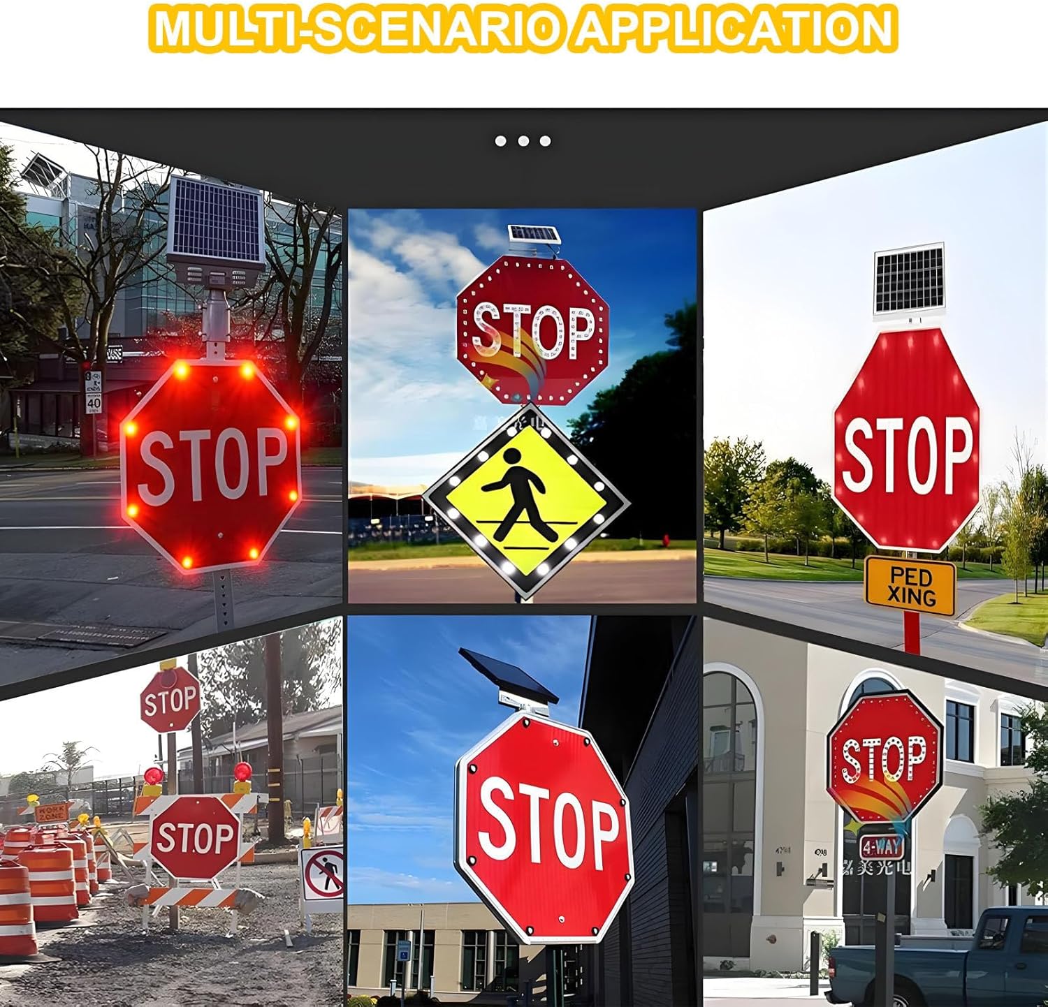 LED traffic signs are effective and visible solutions designed to enhance road safety and traffic management. Our LED solar traffic safety stop sign is an eco-friendly option, constructed from a durable aluminum alloy board paired with an efficient solar panel. This innovative design ensures maximum visibility and reliability, making it an excellent choice for various traffic control scenarios. **Product Specifications:** - **Name:** Stop Traffic Sign - **Type:** Solar LED Traffic Safety Sign - **Material:** Aluminum Plate, Reflective Film, Lamp Beads - **Working Mode:** Operates 12/24 hours per day with options for flashing or constant lighting - **Visible Distance:** More than 2500 feet, ensuring clear visibility from afar - **Working Time:** Delivers consistent performance for 5-7 consecutive days on a full charge - **Life Span:** Designed for longevity with a lifespan of 3-5 years - **Size Options:** Available in 60cm (24 inches) and 80cm (32 inches); custom sizes can be requested. **Package Includes:** - 1 Stop Sign - 1 Solar Panel **Installation Notes:** - For optimal performance, install the sign in direct sunlight without any shading. - Ensure the LED lamp functions properly before installation. - Position the solar panel to receive maximum sunlight throughout the day for efficient charging. - To preserve battery life when not in use, turn off the switch. For best results, charge in full sunlight for three consecutive days before first use. This LED solar traffic stop sign is perfect for various applications, including construction sites, parking lots, and pedestrian crossings. Its high visibility and energy-efficient design not only promote safety but also contribute to environmental sustainability. Choose our LED solar traffic safety sign for a reliable and effective traffic control solution.
