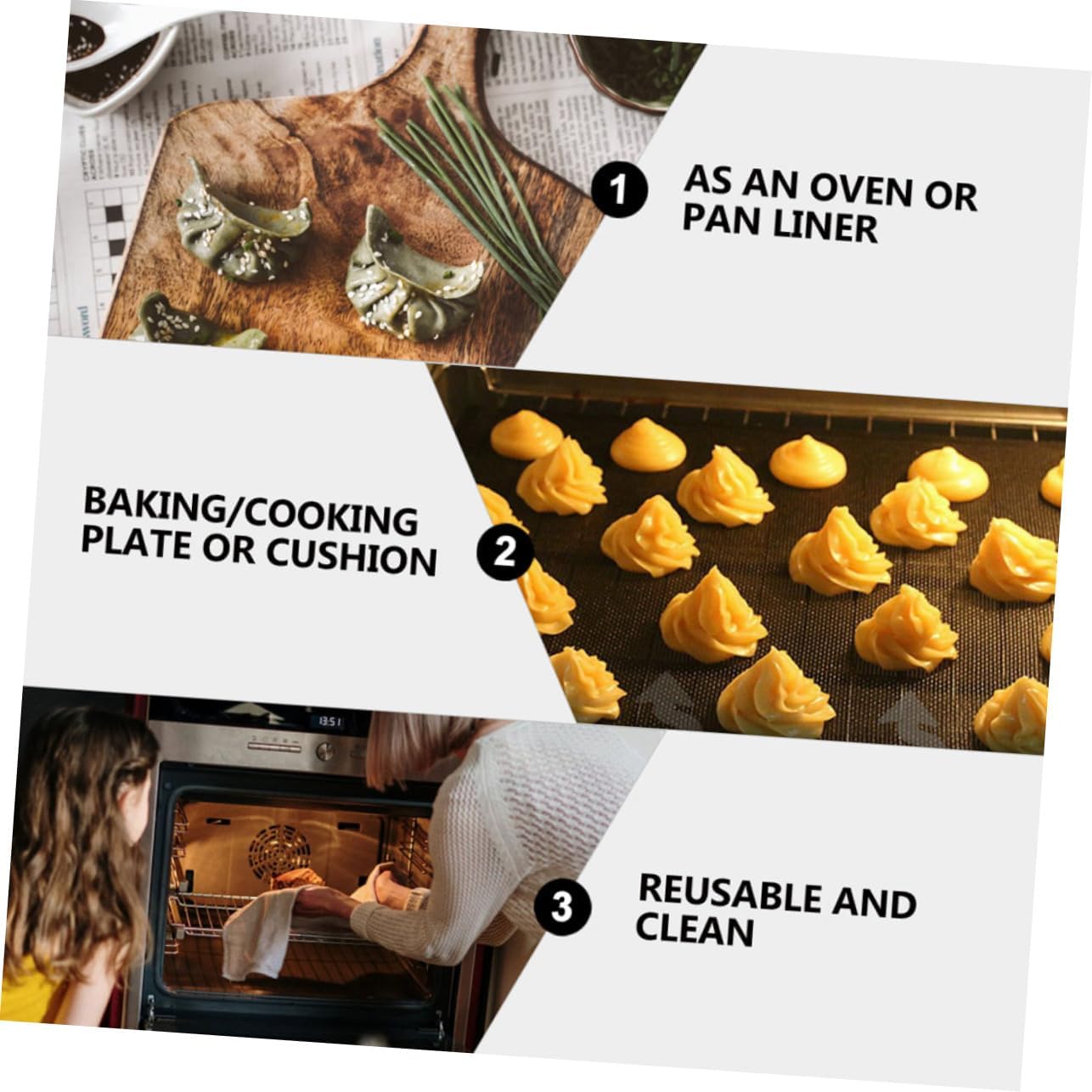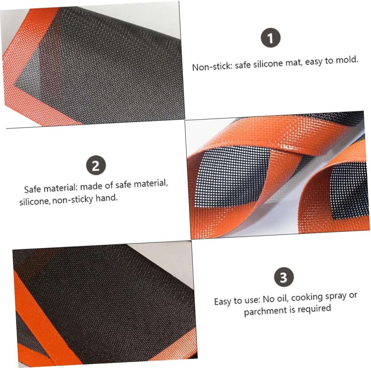 Package Include 6 x oven liner Features -Color:Black and Orange non-stick baking -Size:40.00X30.00X0.20cm/15.72X11.79X0.08in heat resistence pad -Material:Silicone cake baking mat -Effective heat insulation, arbitrary bending, save space silicone baking mat. -Non-stick baking mat is easy to clean, reusable and . baking pad -Multi-purpose, can be used as table mat, also can be used as hand mat baking Heat Oven Mat -Non-stick silicone material, heat temperature, convenient to use Silicone Pastry Mat. -Simply wash with your hands, or toss the hot mat in the dishwasher if it gets dirty Baking Mat.Goods Informationnon-stick baking We adopt silicone material, can use it for a long time.heat resistence pad If you are looking for a baking mat with reliable quality and reasonable , I will tell you that our mat will be your choice.silicone cake You can use it to make pizza, cake, roasted meat or other food