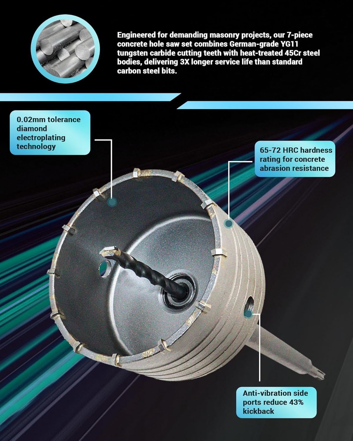 | Set Name | 9-Piece Concrete Hole Saw Kit |