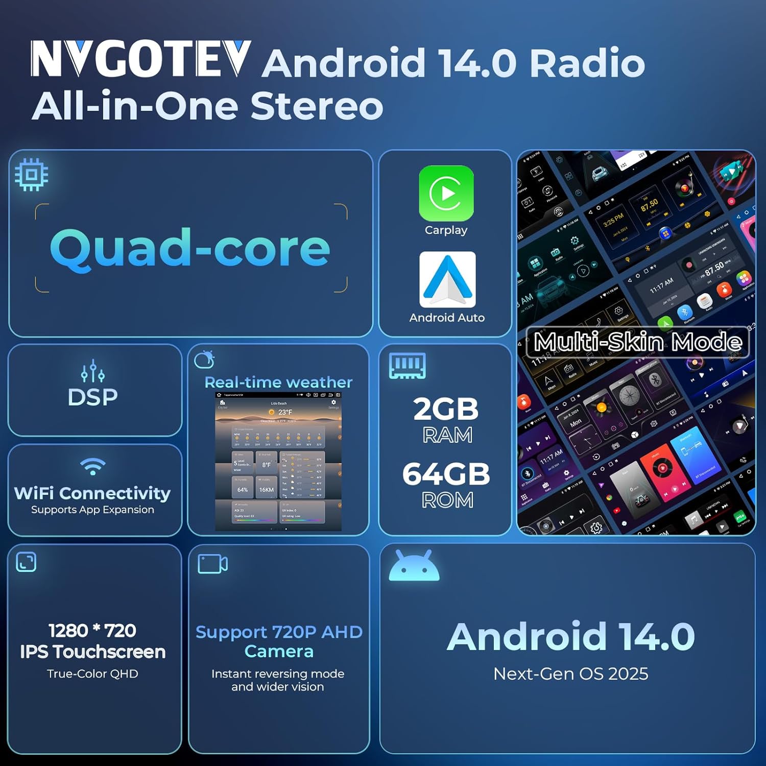 | Additional Features | Android Auto, Apple CarPlay, GPS Navigation, FM Tuner, Built-In Bluetooth, Hands-Free Calling, Built-In Wi-Fi, SD Card Input, Digital Display Screen, DSP, Equalizer, Front View Camera Input, Rear View Camera Input, Music Streaming, RCA, RDS, Screen Mirroring, Subwoofer, Touchscreen, Voice Control |