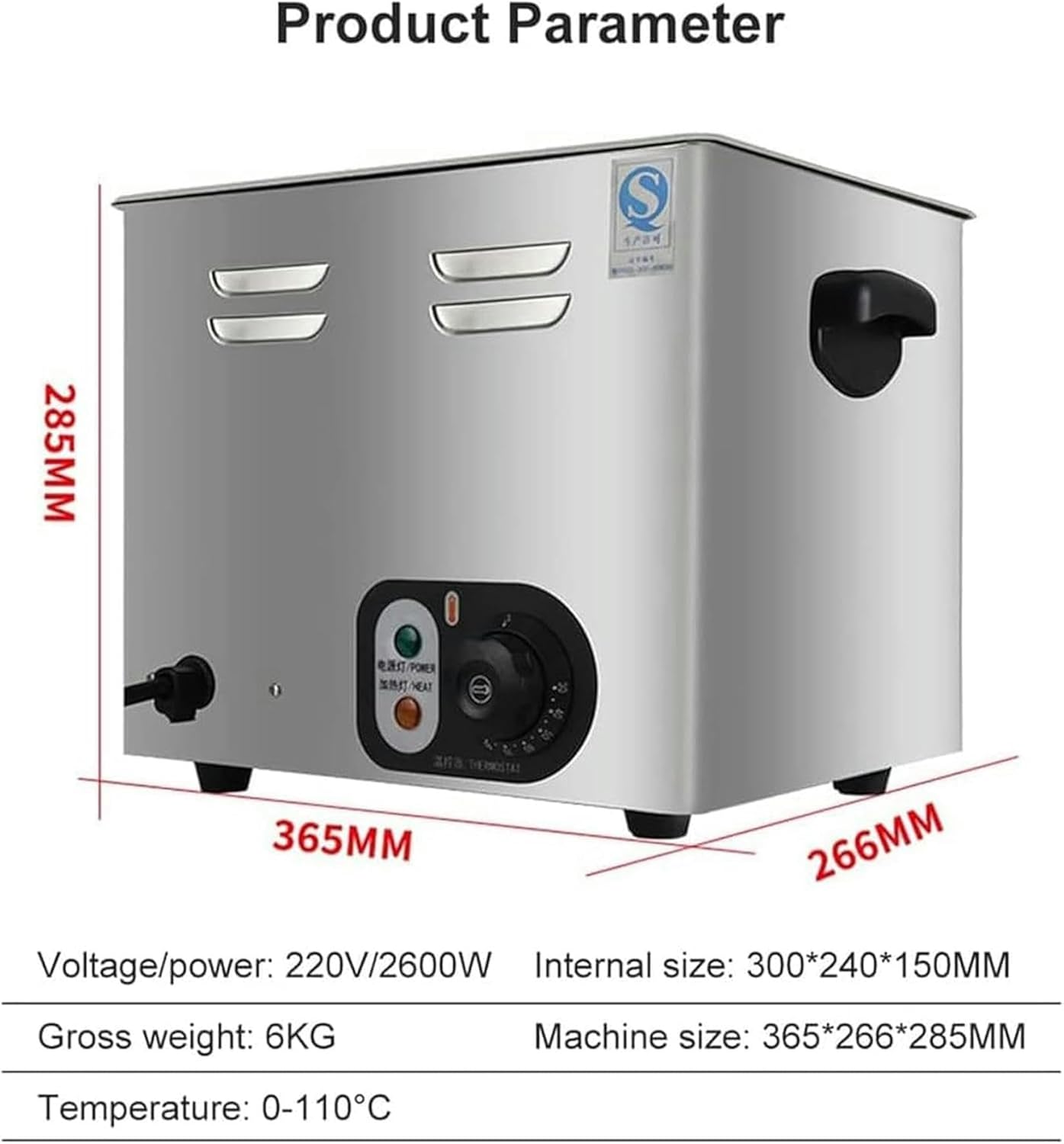Commercial U-shaped thickened heating tube, heats up quickly and has a long service life. Anti-scald handle to avoid direct contact with the body to prevent burns Product Name: Egg Warming Machine Body material: thick stainless steel Voltage: 220V Rated power: 2.6KW Temperature control range: 30-110C° Gross weight: 6KG Internal size: 300*240*150MM Machine size: 365*266*285MM Packing List: 1 * Commercial Egg Boiler