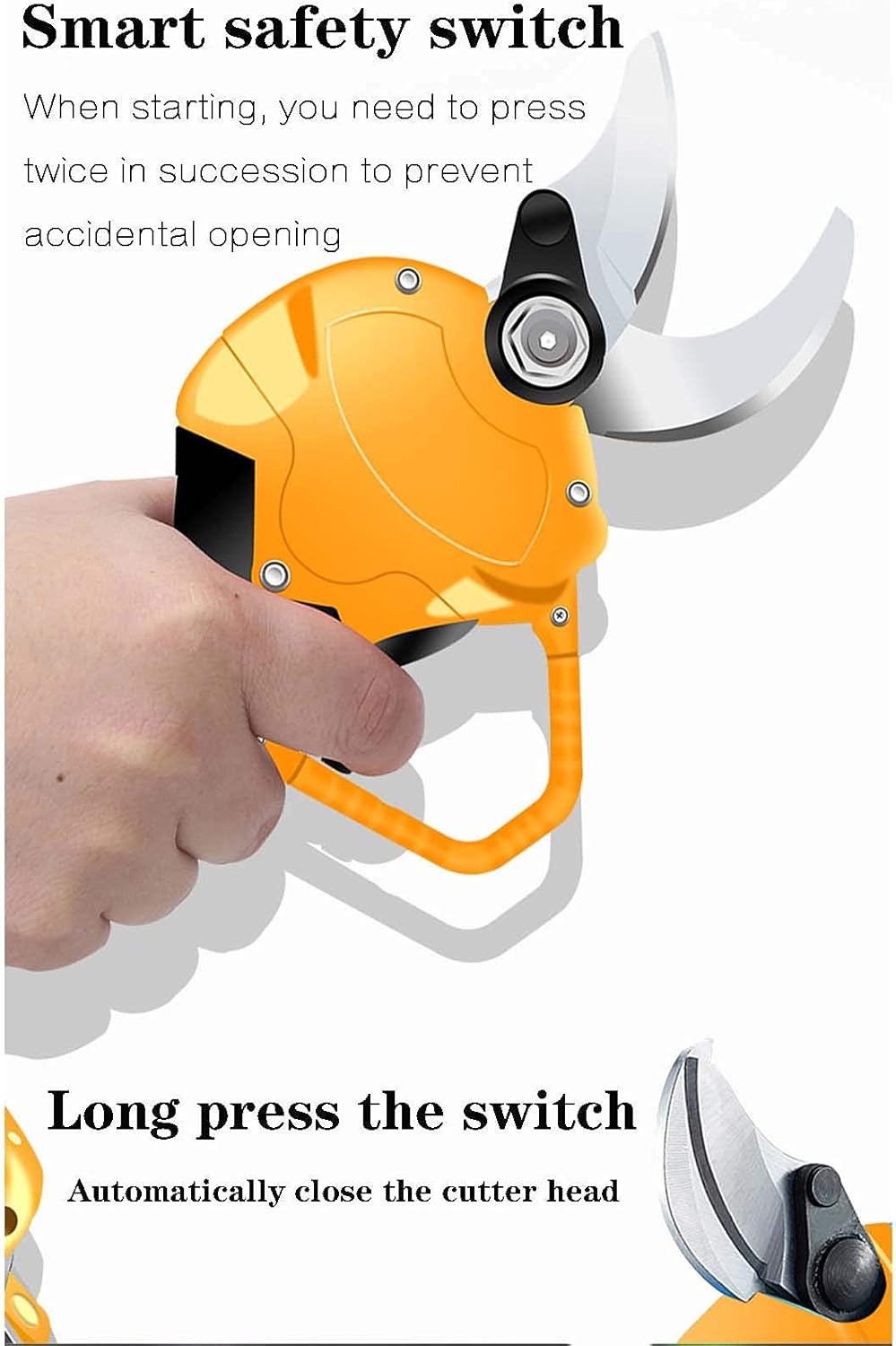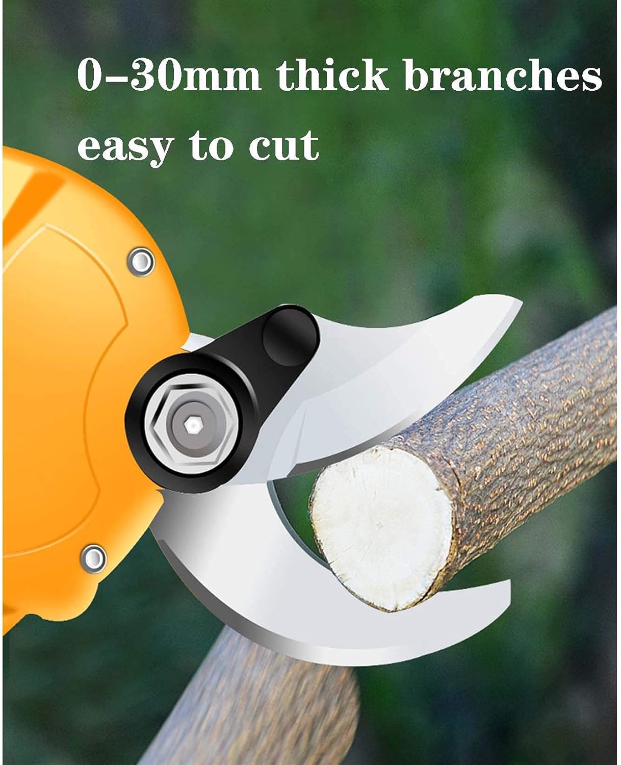 10000mAh lithium battery electric scissors for pruning branches Cutting diameter: 25/35/40mm The non-slip and curved design of the rubber body protects your safety The scissors are made of SK5 alloy, which is easy to cut hard branches of 25/35/40mm. The incision is small and easy to heal, which can reduce injuries caused by tree tearing. It can be used in various gardens, parks, farms, large pastures, orchards and greenhouses, such as grape shears, pruning shears, garden shears, etc. Tip: Please make sure the battery is fully charged before use, this will bring you a better experience and prolong battery life.