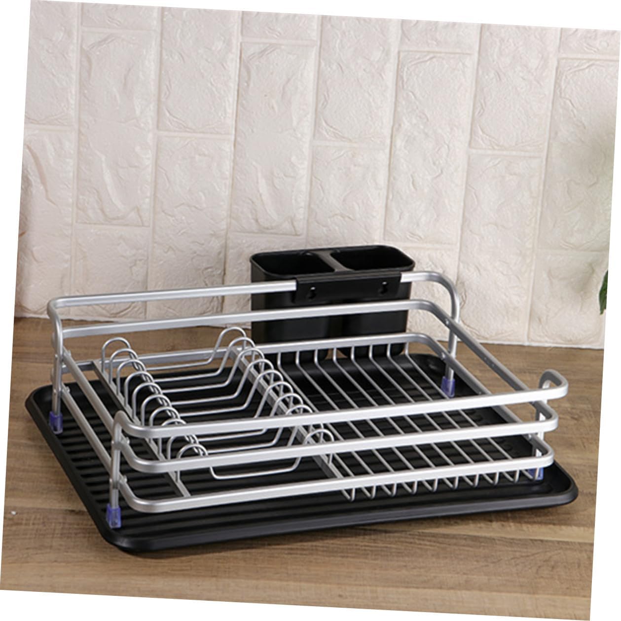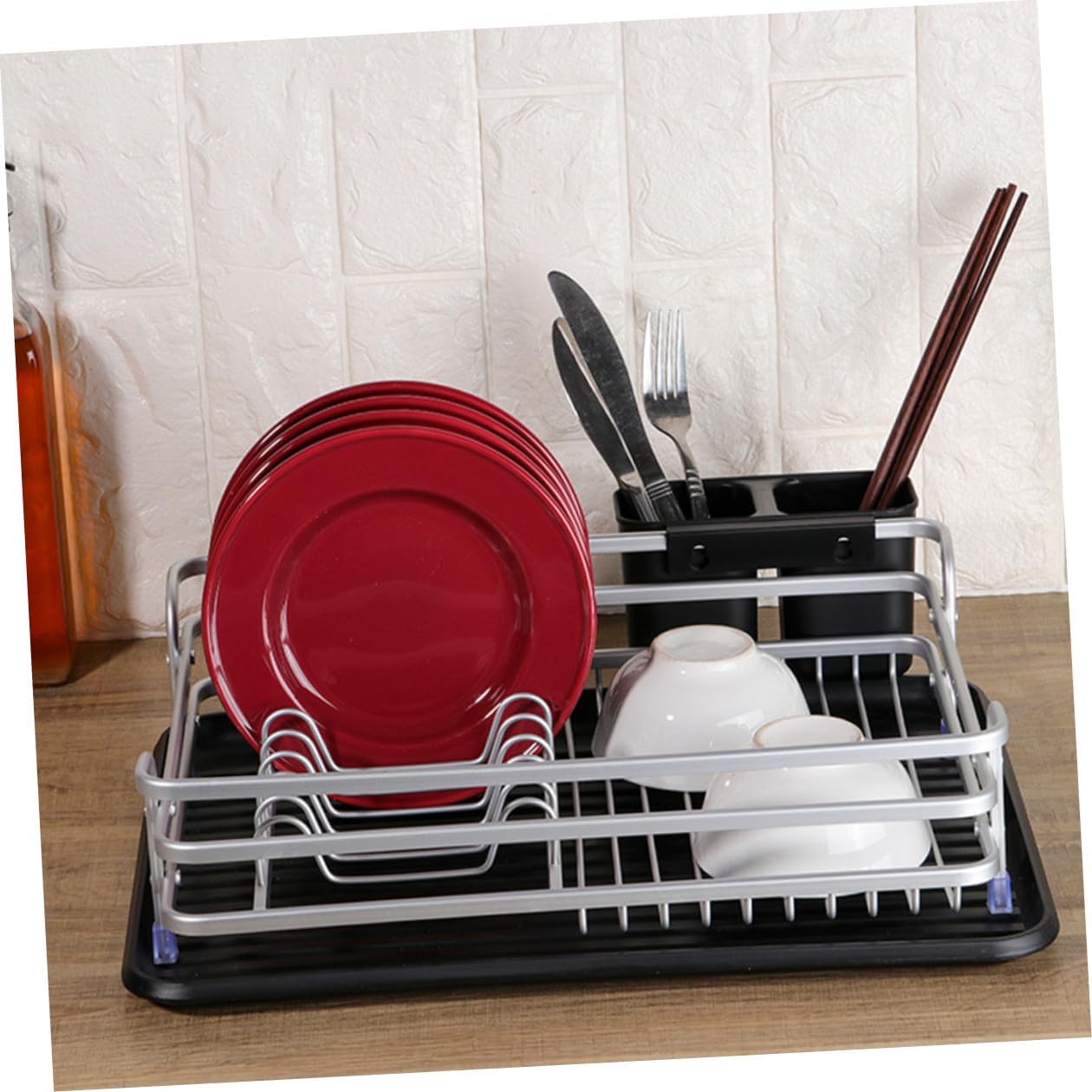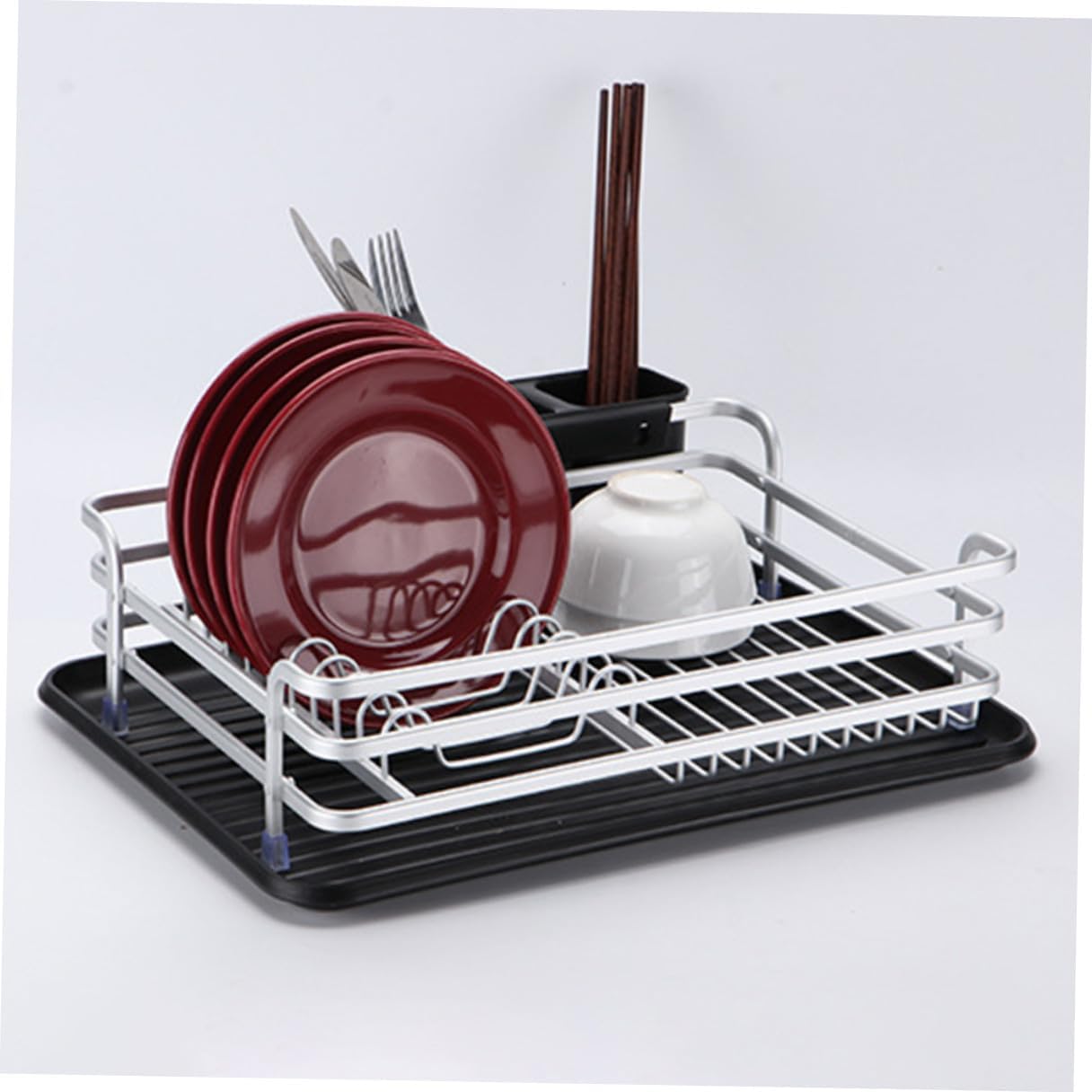 Package Include 1 x Dish Rack Characteristics -Size:42.00X30.00X14.00cm/16.51X11.79X5.50in -Color:Black -Material:Aluminum,Plastic -Product Info:Dish rack - Store the dishes, cups, and cutlery after washing, a practical accessory for your kitchen and bring you convenience dishes rack. - Using , sturdy and rustproof, the drying rack for dishes . - Multifunctional, the dish drying rack can be used to store tableware, pot lid and chopsticks, also can be as a draining rack removable drying rack. - Equipped with a cutlery holder, can store cutlery better, owning better classification and organization effect kitchen draining rack. - Humanized design can keep your kitchen counter clean and dry, save your time to clean cutlery drying rack.Goods Informationtableware rack Made of , light and easy to use, not easy to deform or break, saving room for your kitchen and make things well organized.drying rack for utensils Are you tired of the messy situation of the kitchen countertop? This practical and professional kitchen dish drying rack can be your unmissable choice