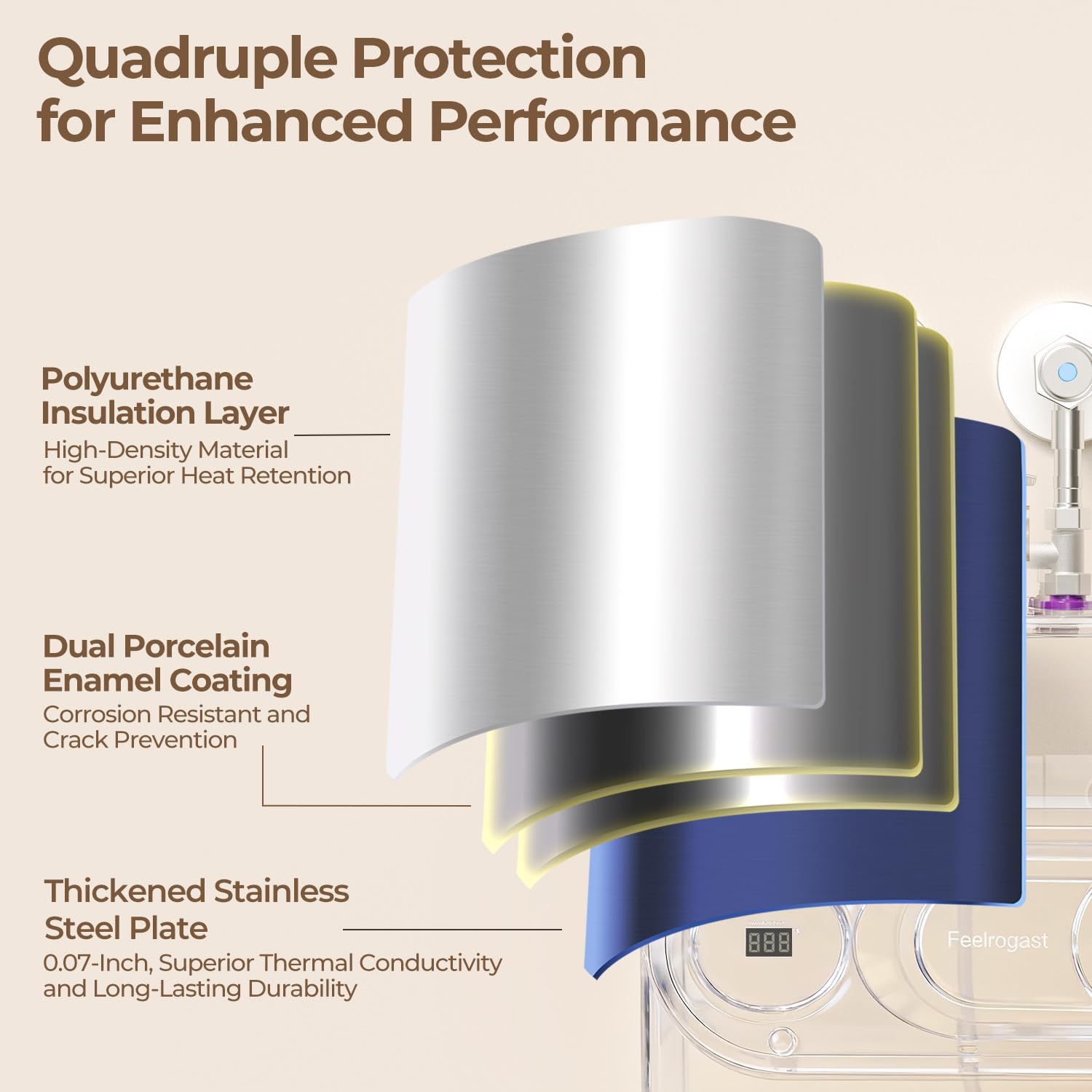 | Special Features | Instant Hot Water, Digital Temperature Display, Upgraded T&P Relief Valve, Wide-Ranging Applications |