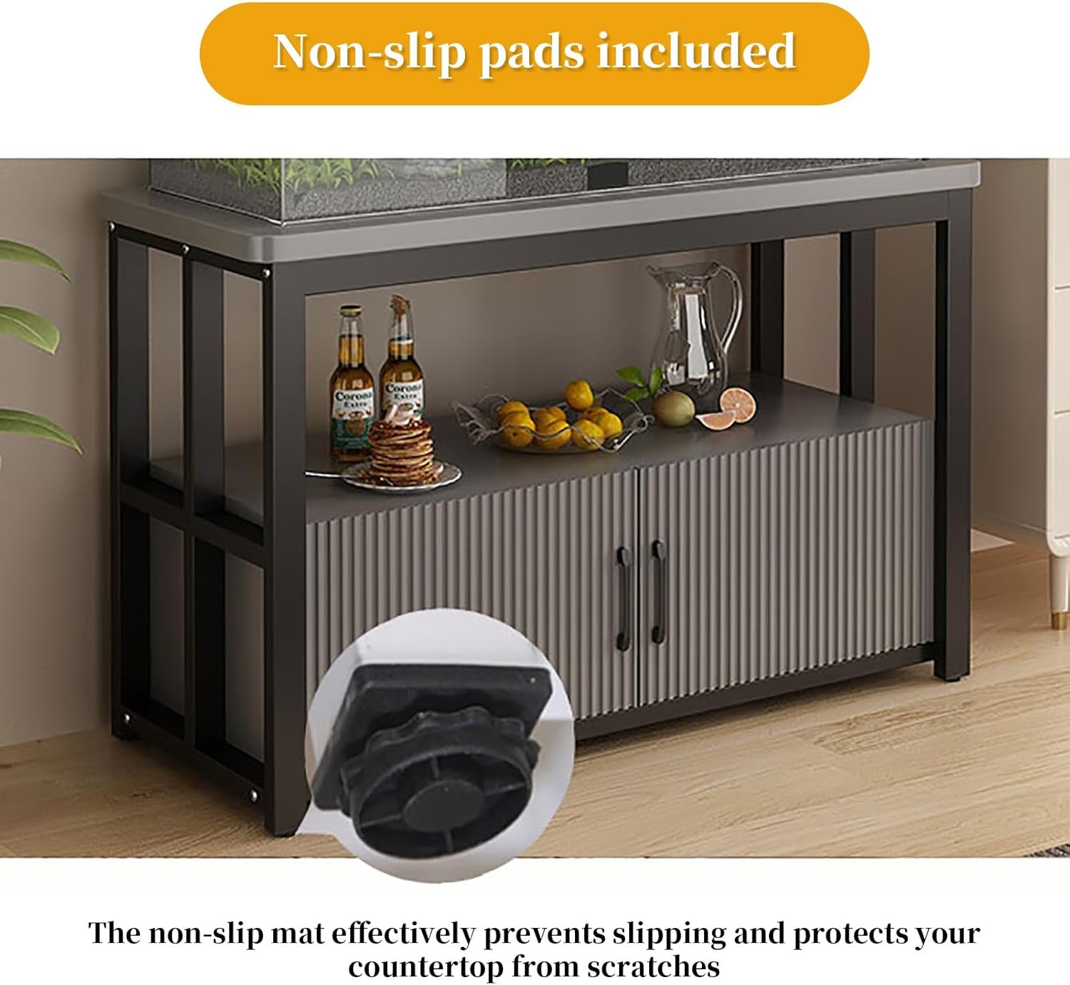 Product Name: Aquarium StandProduct Material: High-density fibreboard + metal frameProduct Colour: Black / White / Grey / Wood colourProduct Length: 50-120cmProduct Width: 30/35/40/45/50cmProduct Height: 70cmDesign Features: Two-tier / With storage cabinetSuitable Settings:1. Living Room Decor: Integrates the aquarium with storage cabinets, displaying aquatic scenery while storing daily items, enhancing the overall elegance of the living space.2. Office environment: Adds vitality and a fluid atmosphere to office spaces, whilst the storage cabinet accommodates documents and supplies.3. Retail/reception areas: Installed in salons, cafés, or reception spaces, it fosters a comfortable ambience whilst drawing customers' attention.Packaging contents:Aquarium stand ×1Accessories (screws / tools / anti-slip pads etc.)