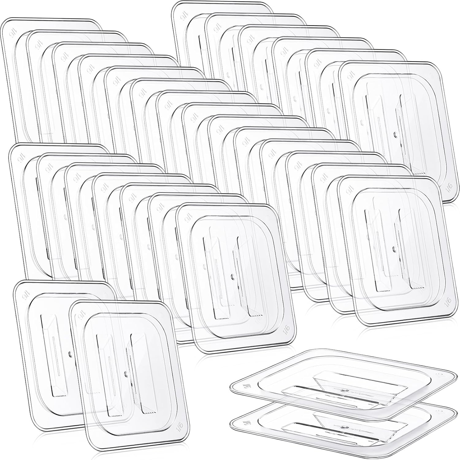 | Included Components | 24 x Clear food pan lids |