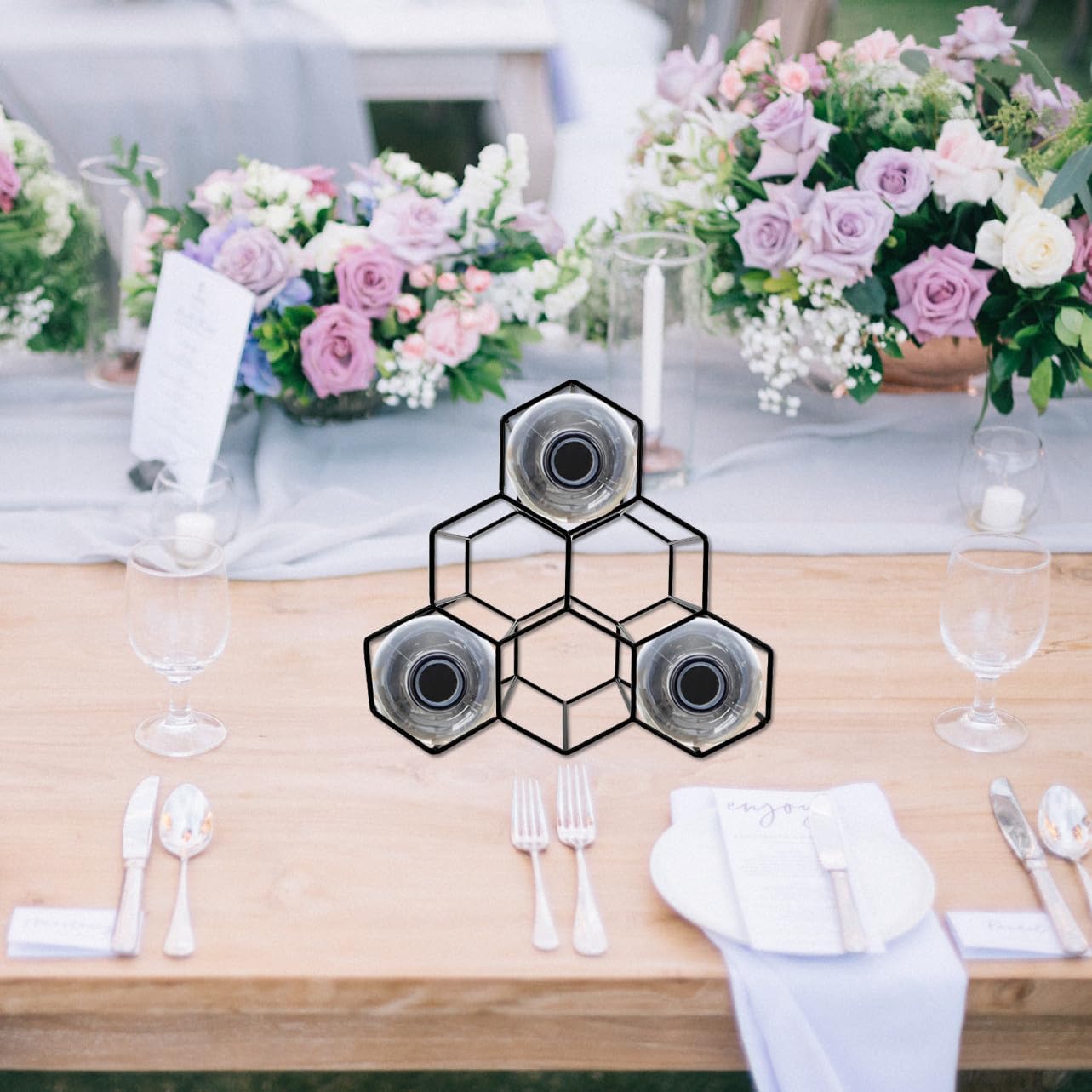 Package Include 1 x Wine Bottle Rack Characteristics -Product Info:Wine rack ornaments - Color: Black. - Size: 28.00X26.00X18.50cm/11.00X10.22X7.27in. - Material: Iron. - The wine rack is stackable, whether you love the red wine, white wine or sparkling variety, create an display with this stand Geometric Design Wine Shelf. - Stable structure, can stand without shaking, beautiful and practical at the same time Honeycomb Metal Stand. - The wine rack adds reasonable storage space and decorative style to your dining room, kitchen counter or bar area Freestanding Wine Shelf. - Made of iron materials, and can be used for a long time. - workmanship, to its popularity and utility. Integrated assembly, strong and Wine Rack Holder.Goods InformationWine Bottle Holder This is wine bottle display stand, made of iron materials, and can be used for a long time.Freestanding Wine Shelf Not only a wine display stand, but also a perfect home decoration.Wine Storage Rack The geometric pattern is the influence of modern minimalist trends while the metallic brushed black finish adds a touch of luxury and elegance to the wine rack