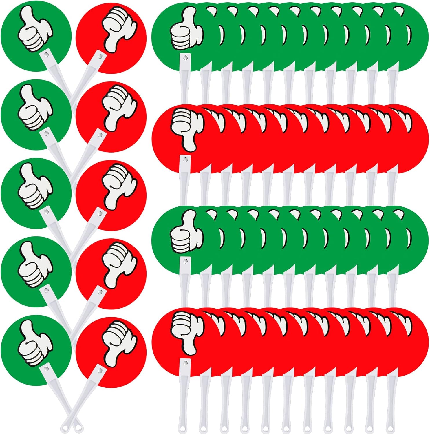 Features: These voting paddles are lovely and adorable classroom supplies because of their attractive designs and elegant hue. These practical fans are nice additions to various class activities, bringing joy and delight to your class. The size of the rating sign is about 12 x 12 cm/ 4.72 x 4.72 inches in diameter, and the handle is about 10 cm/ 3.94 inches in length. It is highly useful and convenient for you to take them with you when you go out or go on a trip without taking up too much space. Specifications: Material: plastic Color: as shown in the pictures Size: about 12 x 12 cm/ 4.72 x 4.72 inches in diameter, the handle is about 10 cm/ 3.94 inches long Package includes: 150 x Thumbs up thumbs down paddles Notes: Manual measurement, please allow slight errors on size. The color may exist a slight difference due to different screen displays.