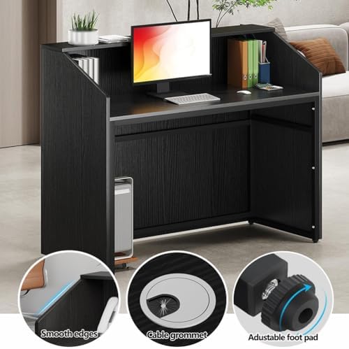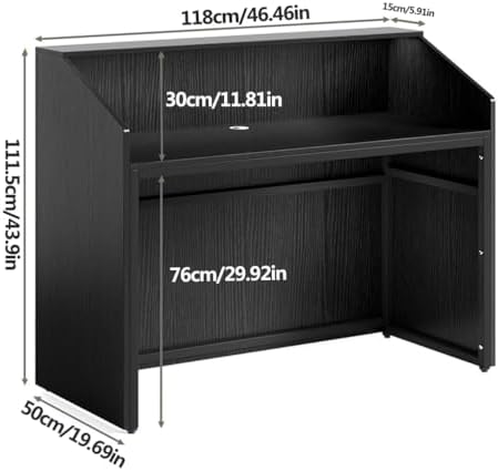 Elevate your workspace with our modern Small Reception Desk, perfect for a variety of settings including corporate receptions, beauty salons, clinics, hotel lobbies, and retail stores. This stylish desk not only enhances your professional environment but also optimizes the use of space, making it ideal for compact areas. Designed with practicality in mind, our reception desk features a sleek, waterproof surface that is easy to maintain—simply wipe it clean to keep it looking pristine. Crafted from thickened MDF and stainless steel components, this desk ensures durability and long-lasting use, meeting the needs of busy environments. With dimensions of 118 × 50 × 111.5 cm (46.46 x 19.69 x 43.9 in), it fits seamlessly into any layout while providing ample space for your reception activities. The wood texture complements a variety of decor styles, making it easy to integrate into your existing design. Whether you're welcoming clients, handling transactions, or managing appointments, this reception desk offers the functionality and aesthetic appeal you need. For any custom size requests or after-sales support, feel free to reach out to us via email. Upgrade your reception area today with a desk that combines style, utility, and easy maintenance!