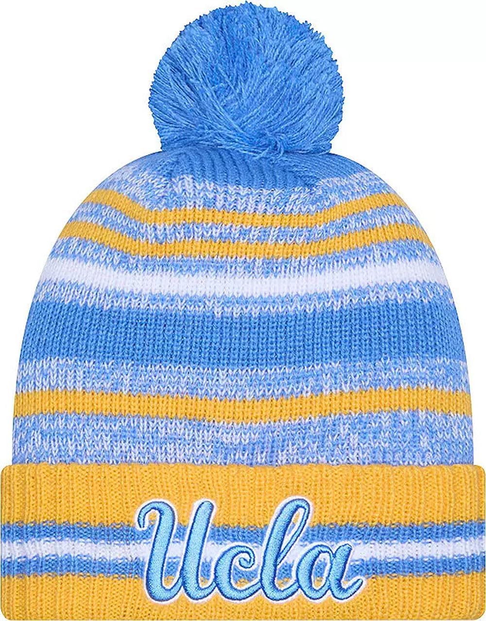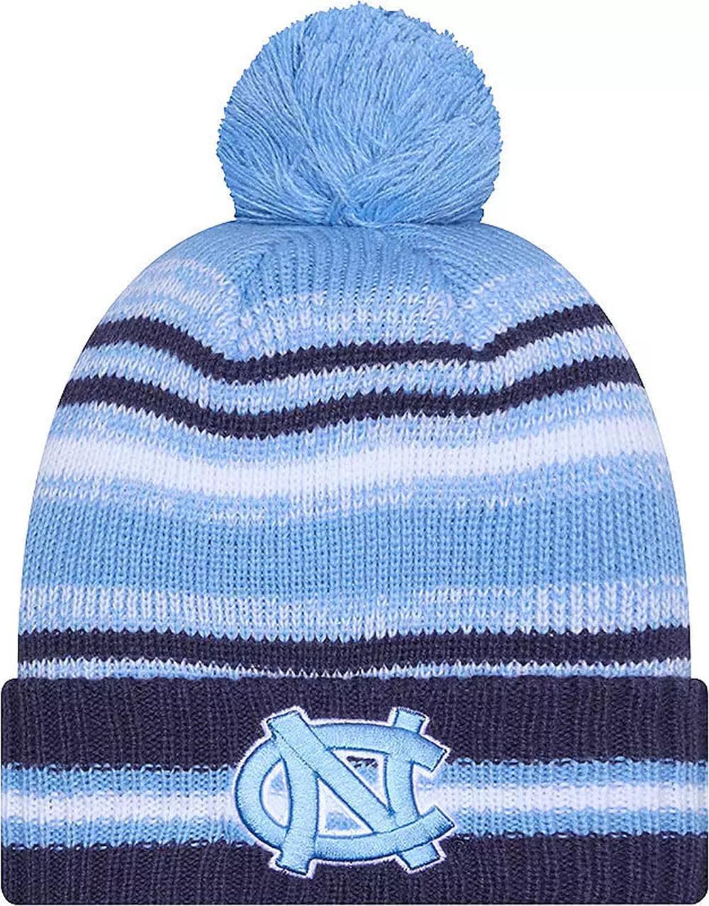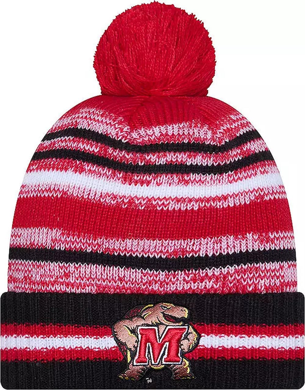 Sport your Favorite College Team Pride, keep warm, and make a fashion statement with this great looking beanie hat with Pom from New Era. This NCAA Knit from New Era is a cuffed knit with an embroidered logo at the front, stitched New Era flag at the wearer's left side, and a plush pom at the top.
