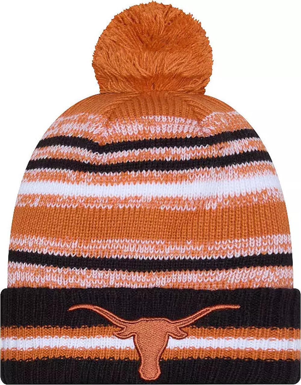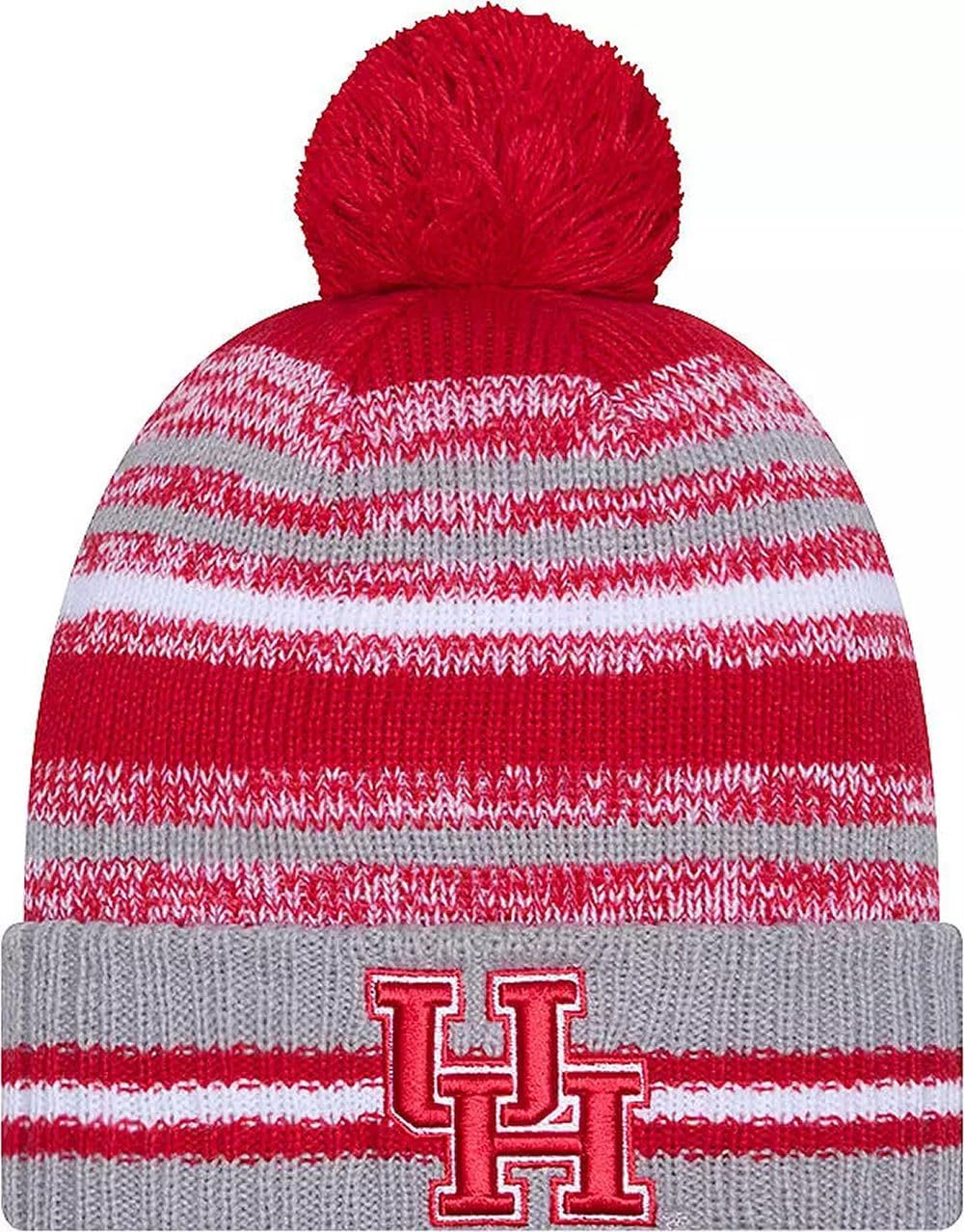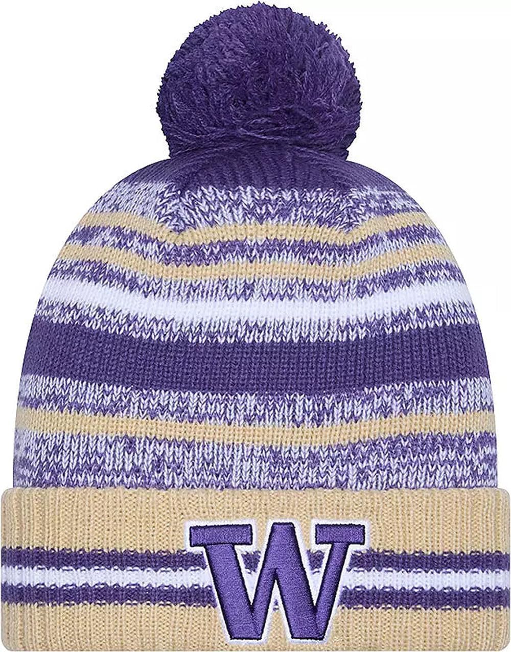 Sport your Favorite College Team Pride, keep warm, and make a fashion statement with this great looking beanie hat with Pom from New Era. This NCAA Knit from New Era is a cuffed knit with an embroidered logo at the front, stitched New Era flag at the wearer's left side, and a plush pom at the top.