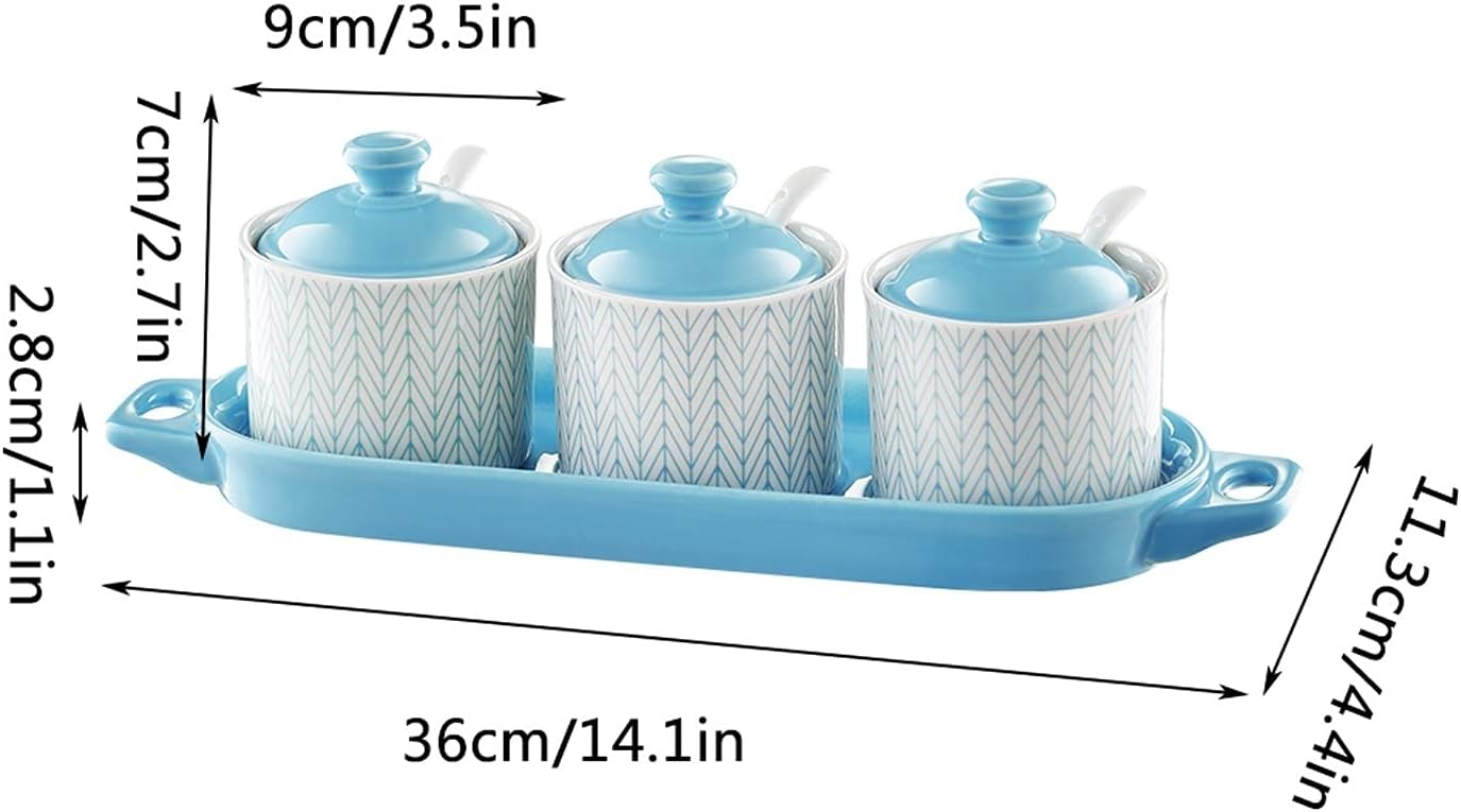 A cheerful container provides a sense of harmony and is an eye-catcher on the kitchen counter, brightening the kitchen Product name: Seasoning jar Material: Ceramic Product style: with lid + spoon + tray Color: blue, green, red, black, yellow Capacity: 250ML (8.5 ounces) Dimensions are all manually measured, there are slight gaps, please refer to the actual product received Except for the main product shown in the main image, other items are for display only and do not include other items. Welcome to share and feedback so that we can provide you with better products and services If you want to buy more quantity, please contact us via email, I am glad to serve you!