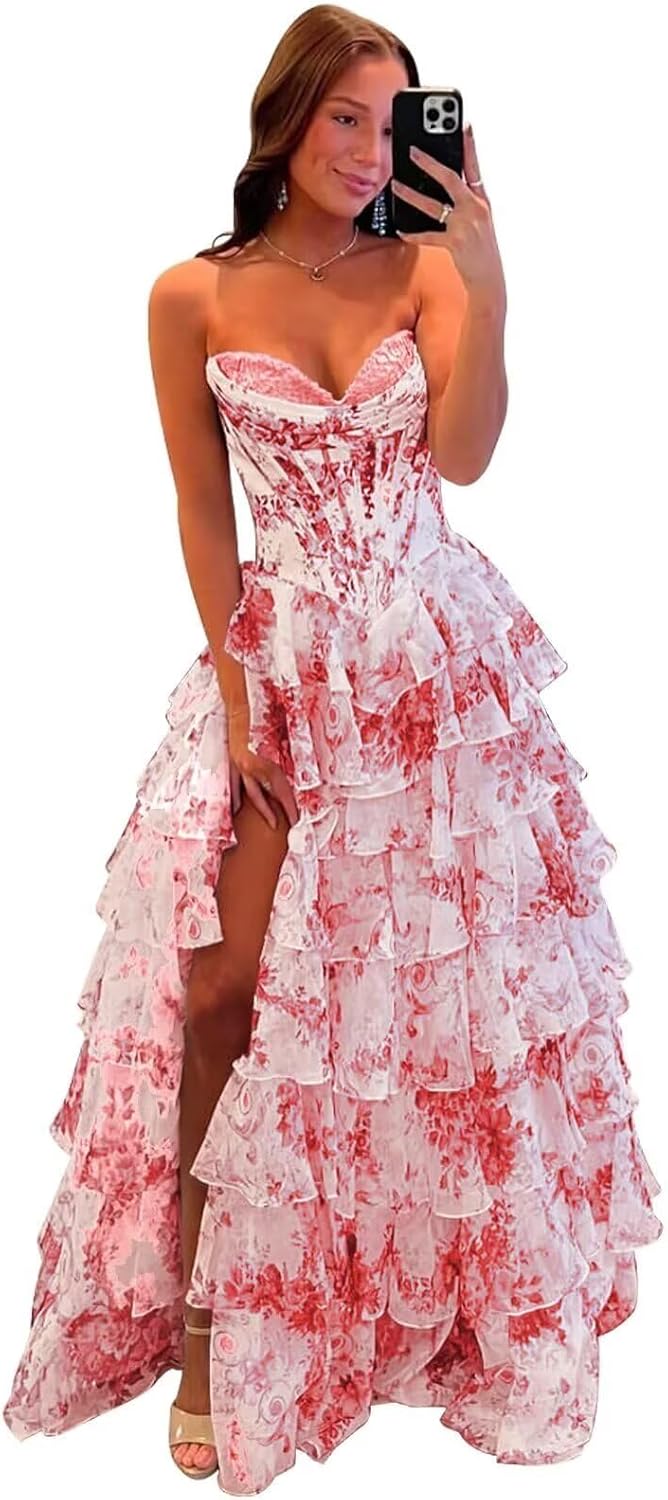 | Embellishment Feature | A Line, Ruffle, Strapless, Tiered, with Slit |