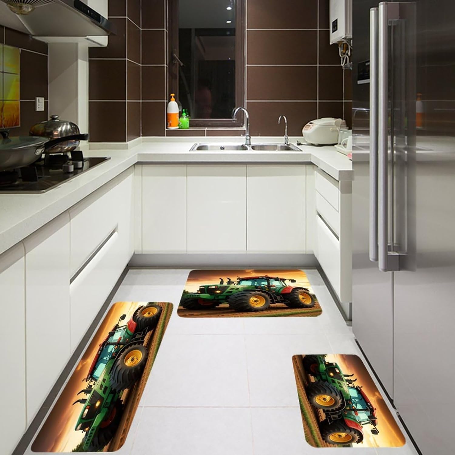 Transform your kitchen, office, or laundry room with our 3PCS kitchen mats setโa must-have farmhouse kitchen rugs and spring kitchen mats combo. As a non slip soft kitchen area rug and cushioned anti fatigue kitchen mat, it's crafted from pill-resistant flannel that offers a gentle, supportive surface for standing long hours. The farmhouse runner rug and farmhouse low-pile runner rug pieces feature a low-profile floor mat for kitchen design, ensuring they fit effortlessly under doors and in tight spaces.This kitchen decor runner rug set is more than just a stylish addition; it's a practical non-slip standing sink mat. Whether you're washing dishes, working at your desk, or doing laundry, the anti fatigue mats provide steady support to keep you comfortable. The non-slip backing keeps each kitchen floor rug securely in place, even in high-traffic areas.Perfect for indoor and outdoor use, this set embodies the cozy charm of farmhouse kitchen rugs and the fresh vibe of spring kitchen mats. It's a versatile, easy-to-care-for solution that combines functionality with timeless style, making it an ideal choice for any home upgrade.