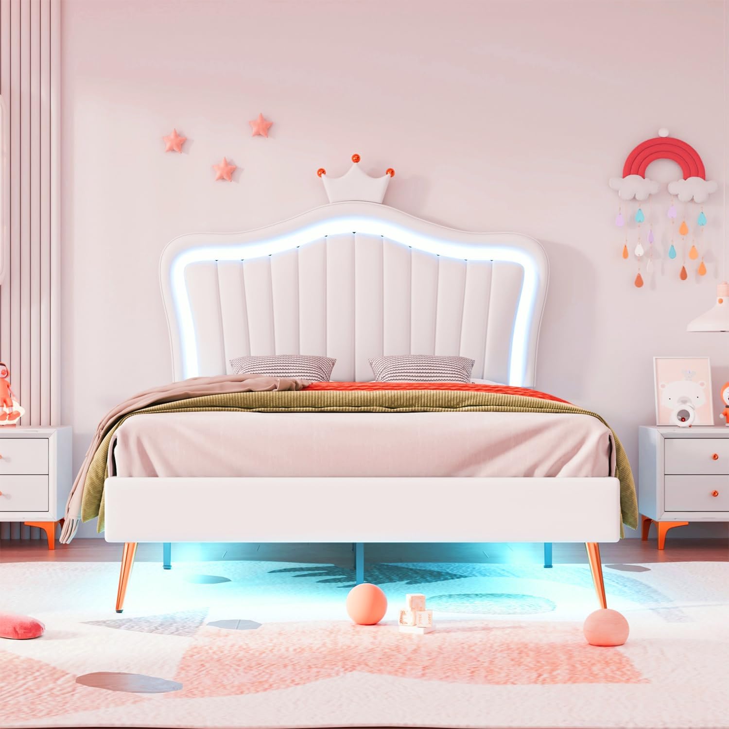 | Other Special Features of the Product | Smart platform bed with LED Adjustable headboard Easy to install Noiseless design Modern princess bed frame |